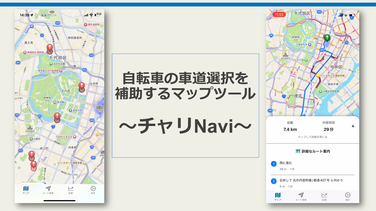 東京都が主催するオープンデータハッカソンに参加し、「チャリNavi」というアプリを開発しました。東京都の公開するオープンデータを活用しながら行政課題を解決するもので、 私は「自転車の自発的な車道走行を促すアプリ」というテーマで参加しました。アプリ開発経験だけでなく、AI研究で培ったデータ分析技術も活かすことができ、とても有意義な経験となりました。