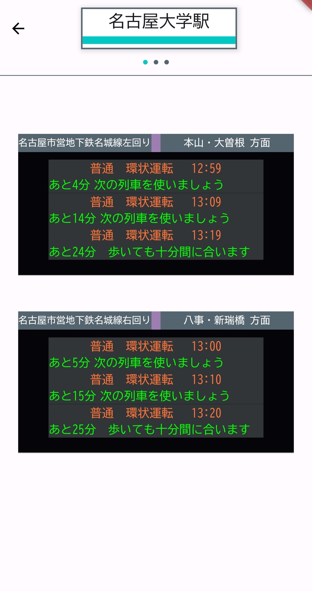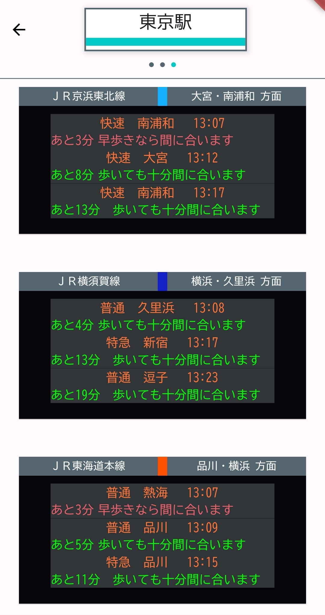 - 現在地からの移動時間を加味して、「走ったら間に合います」、「次の列車を利用しましょう」、「十分間に合います」などのコメントを記載できるようにしました。